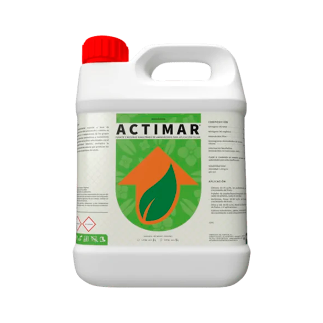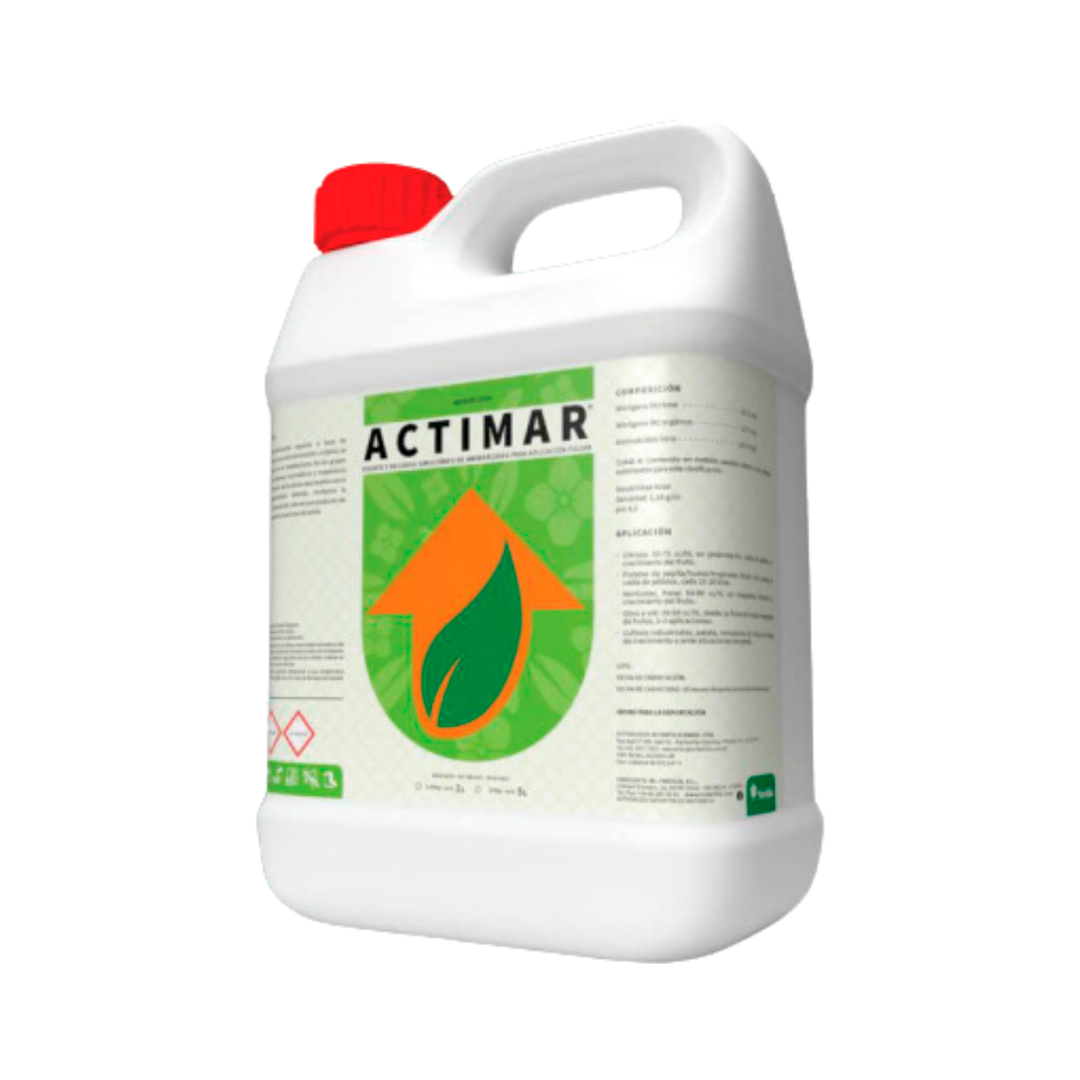 ACTIMAR é um produto especial à base de aminoácidos específicos, fósforo e potássio de rápida assimilação, desenvolvido para estimular o metabolismo vegetal e preparar as plantas para momentos de estresse, além de auxiliar na recuperação após situações adversas.